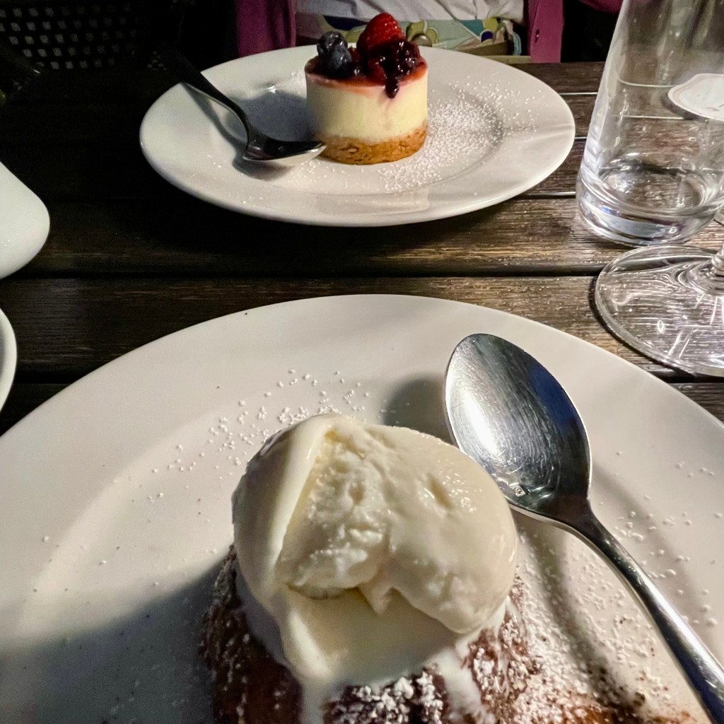 I went to the bathroom and when I returned two desserts were on the table. Lynn smiled and said, “the server mentioned that along with the cheesecake he recommended, the other dessert is the one you wanted to order, and he said it’s on the house.” You’ll find a photo of the two deserts at on-emotions.com