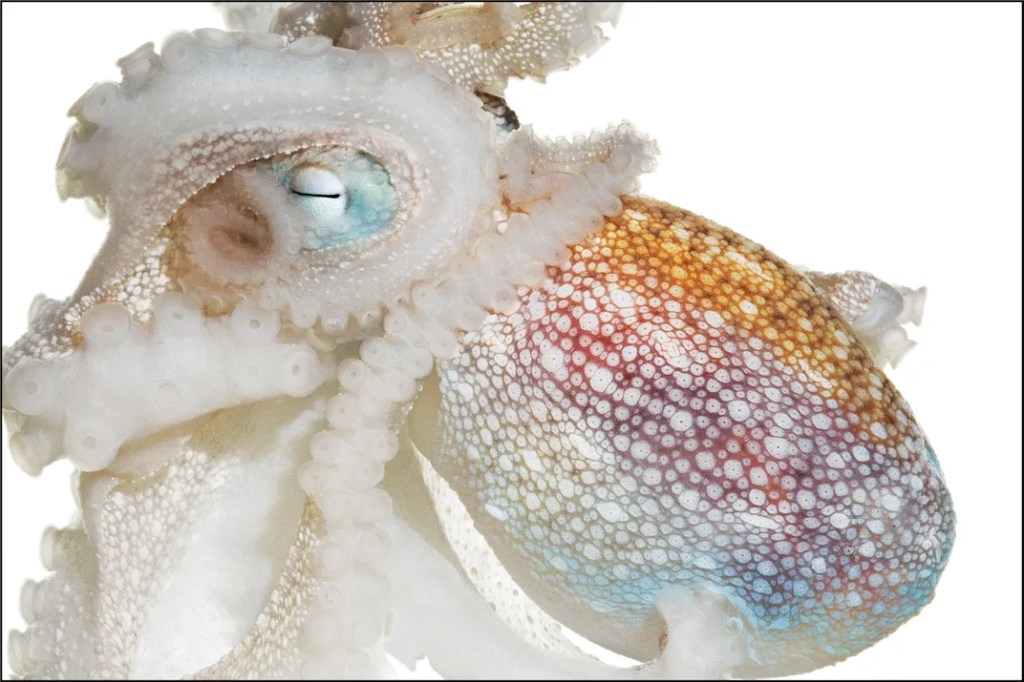 Studying these photographs made me remember how calling someone “spineless” has negative connotations. Meaning, a person does not stand up for others or themselves. But as I spent time with these images, I noticed how fluid these creatures were, as well as elegant, beautiful and majestic.