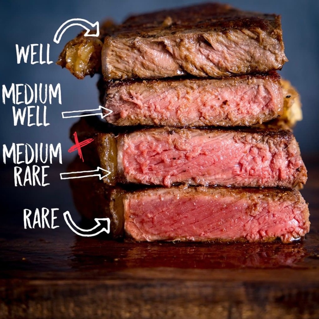 The server paused for a moment and responded, “how about medium rare… plus.”