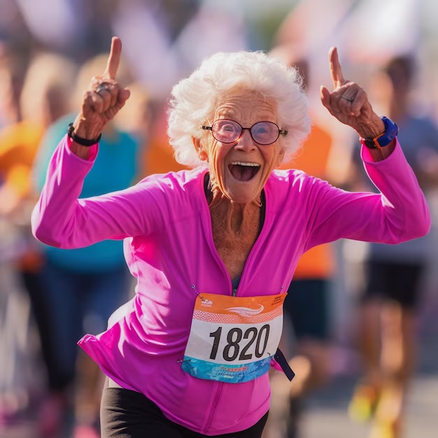 But the entire room just changed as a woman in her late sixties wearing running clothes walked into room. About twenty years older than the other runners, this woman had a big smile on her face and said to two younger woman sitting next to me, “have fun tomorrow!” or her way to the buffet.