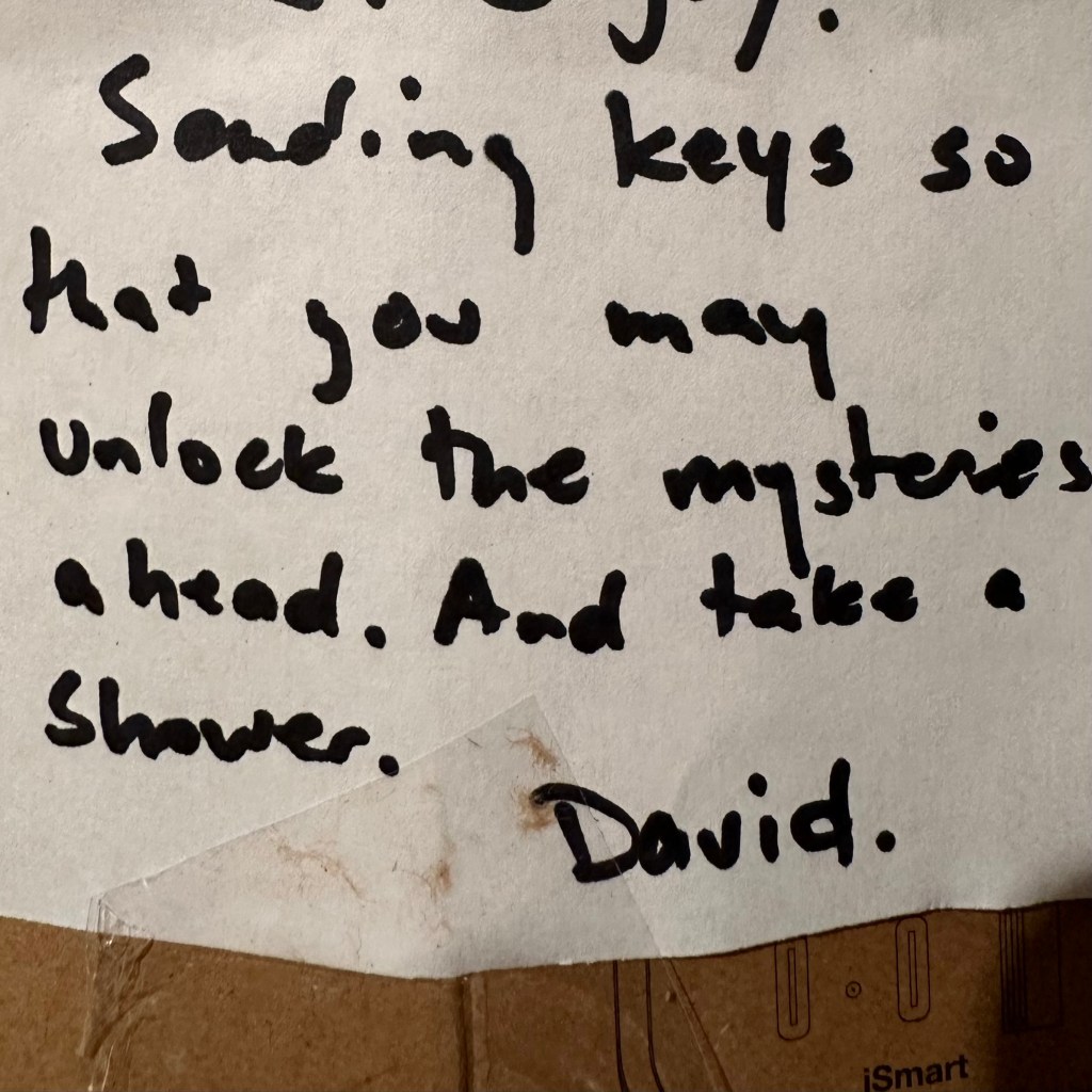 He was kind enough to mail them back with a note that read, “Sending keys so that you may unlock the mysteries ahead.”
